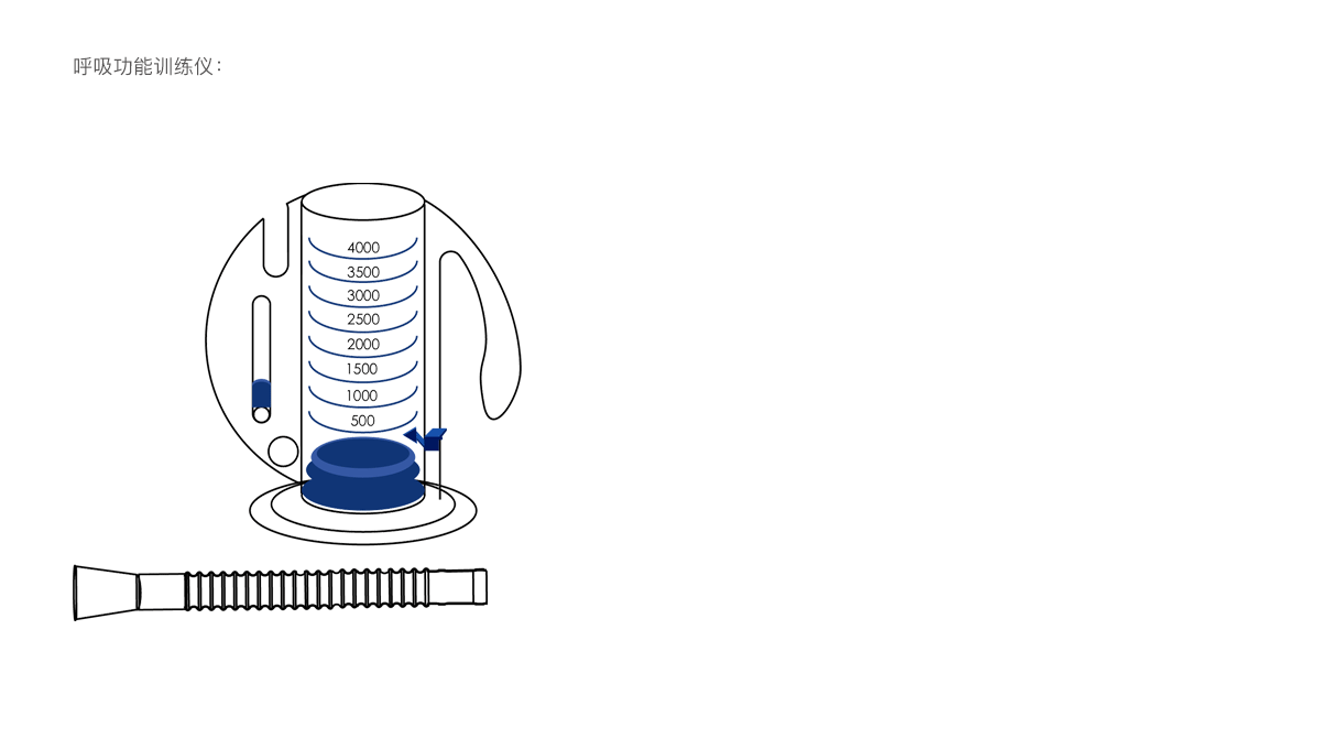 管體內(nèi)氣流阻力設(shè)計合理,可有效鍛煉患者呼吸功能,方便清洗、同一患者可反復(fù)使用。