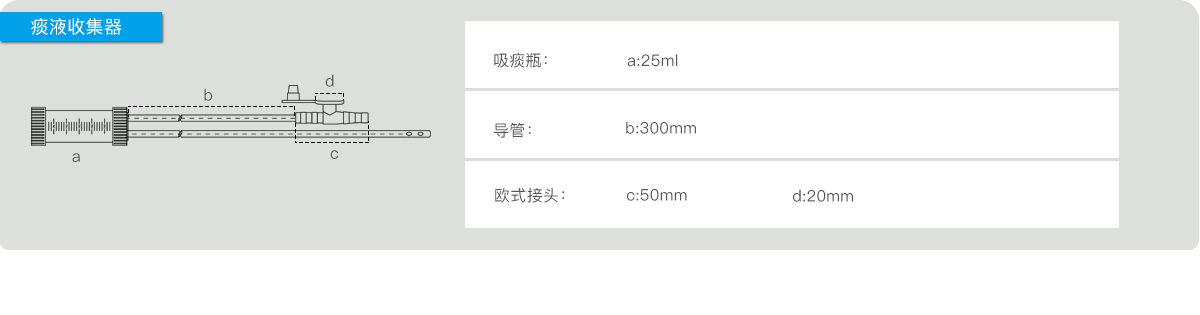 2.產(chǎn)品由專用吸引接頭、吸痰管路、痰液收集容器組成,獨立包裝。